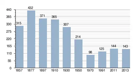 - Bron: INE, 1857-2011: volkstellingen