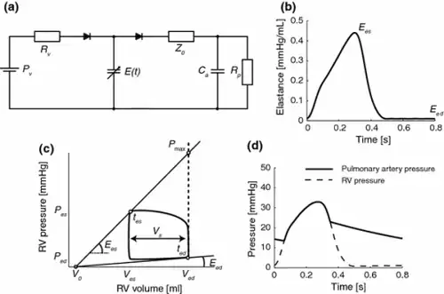 Daarbij zijn EA en CA respectievelijk de elastantie en de compliantie van de oppervlakte (A) van de dwarsdoorsnede, ri de inwendige straal van het bloedvat en h de dikte van de vaatwand.