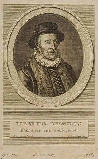 Elbertus Leoninus (eigenlijk Elbert de Leeuw) was van 1548 tot 1579 hoogleraar te Leuven en stond in hoog aanzien door zijn juridische kennis. Hij trachtte na het uitbreken van Tachtigjarige Oorlog (1568) te bemiddelen en bracht adviezen uit aan Granvelle, Margaretha van Parma en Alva, later ook aan de prins van Oranje (1567).