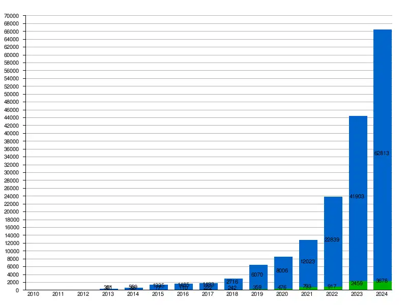 - ↑ a b c Gebaseerd op: Belgium, eafo.eu (geraadpleegd op 05/07/2025). Voor 2022: Febiac.be (gearchiveerd)