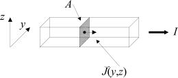 Voor een geleider met constante doorsnede waarin een stroom loopt is de stroomdichtheid de verhouding tussen stroomsterkte en beschikbare oppervlakte, dus: