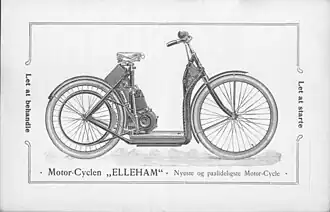 Elleham was een Deense constructeur die scooter-achtige voertuigen bouwde die voorzien waren van 2¾pk-motoren. Deze motoren hadden twee boven elkaar liggende cilinders die verbonden waren door slechts één krukas. Ze hadden snuffelkleppen voor de inlaat en mechanische uitlaatkleppen. De cilinderinhoud was 734 cc. Ellehams hadden een open frame en een verhoudingsgewijs groot voorwiel.