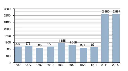- Bron: INE, 1857-2011: volkstellingen