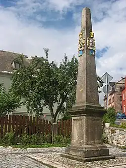 - Kursächsische Postmeilensäule uit 1729 in Elterlein (Marktplatz)