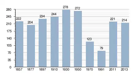 - Bron: INE, 1857-2011: volkstellingen