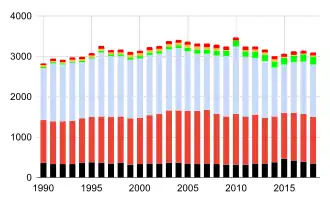 - ↑ IEA - Statistics Search. IEA, select Country/Region, Balances or Electricity