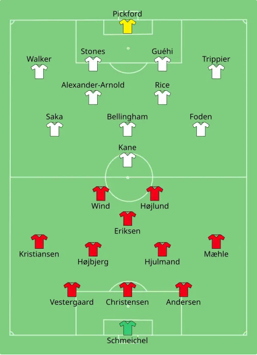 - ↑ Onsamenhangend Engeland koestert punt na moeizame wedstrijd tegen Denemarken NOS, 20 juni 2024