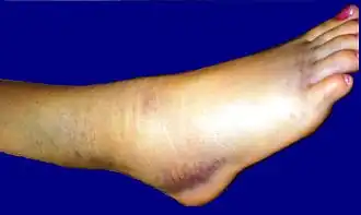 Een veel voorkomende blessure van de enkel is verstuiking. Dit kan optreden wanneer de voet naar binnen zwikt (inversietrauma). Een of meer van de buitenbanden van het enkelgewricht worden dan te ver uitgerekt of gescheurd. Een verstuiking van de enkel is onmiddellijk zichtbaar doordat een flinke eivormige zwelling ontstaat aan de buitenzijde van de enkel. De enkel is pijnlijk, vooral bij binnenwaartse beweging en het is moeilijk of onmogelijk om er op te staan.