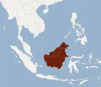 De soort komt voor in Brunei, Maleisië en Indonesië.