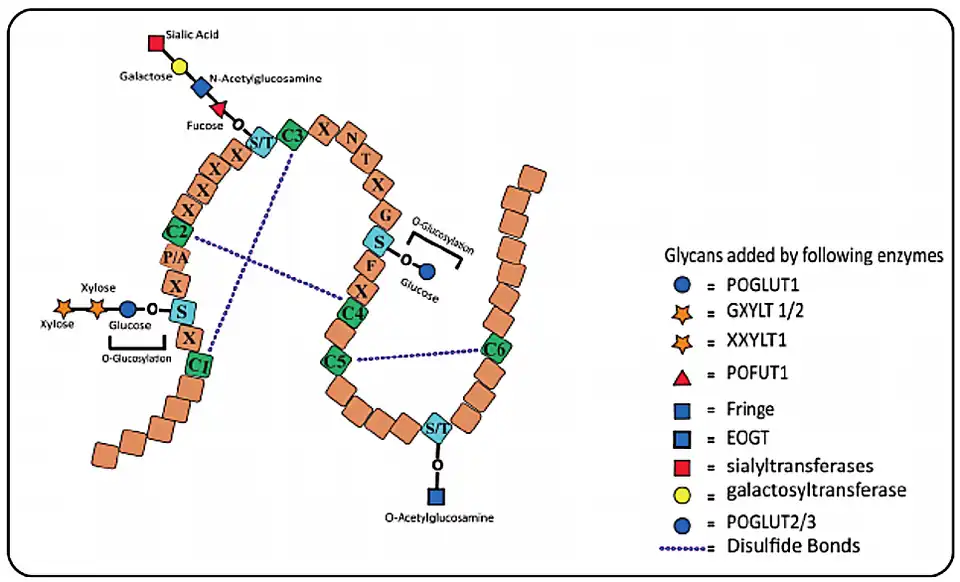 - ↑ Nishimura H, Kawabata S, Kisiel W (1989). Identification of a disaccharide (Xyl-Glc) and a trisaccharide (Xyl2-Glc) O-glycosidically linked to a serine residue in the first epidermal growth factor-like domain of human factors VII and IX and protein Z and bovine protein Z. J. Biol. Chem. 264 (34): 20320–5. PMID 2511201. DOI: 10.1016/S0021-9258(19)47065-8.