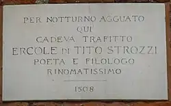 Deze elegie zou hij nooit afmaken. Op 5 juni ging Ercole Strozzi, na een dag hard werken, ’s avonds nog een luchtje scheppen. De volgende morgen werd hij dood aangetroffen. Hij had tweeëntwintig messteken, zijn keel lag open.