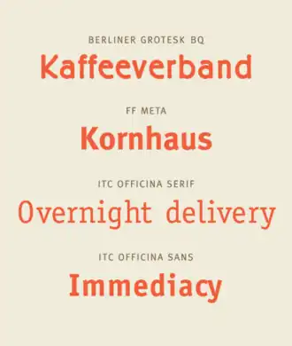 - FF Meta, FF Meta Boiled, FF Meta Condensed, FF Meta Correspondence, FF Meta Subnormal