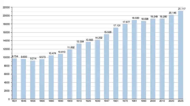 Alle historische gegevens hebben betrekking op de huidige gemeente, inclusief deelgemeenten, zoals ontstaan na de fusie van 1 januari 1977.