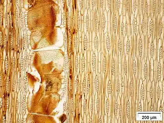 - van alleen axiale elementen: de houtvaten en het axiaal parenchym, plus eventuele tracheïden (axiale elementen zijn in de richting van de lengteas van het plantendeel georiënteerd).