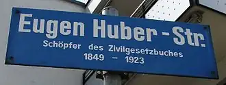 - In Zürich werd een straat vernoemd naar Huber, de Eugen Huber-Strasse.