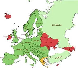 - Rusland: Kaliningrad, Pskov, Loega, Sint-Petersburg, Sosnovy Bor, Vyborg