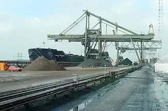 Tevens staat hier een zeebootbelader (laadkraan) met een capaciteit van 5000 ton/uur.