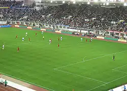 - ↑ De wedstrijd begon 35 minuten later omdat er vlak na het begin fakkels op het veld werden gegooid.