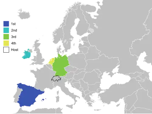 - 1 Jaren in het vet betekent dat dat land in dat jaar de competitie won.