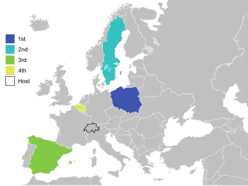 - 1 Jaren in het vet betekent dat dat land in dat jaar de competitie won.