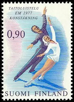 Finse postzegel, uitgegeven ter gelegenheid van de Europese Kampioenschappen kunstschaatsen 1977