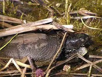 - ↑ a b Bartłomiej Najbar & Ewa Szuszkiewitcz, Reproductive ecology of the European pond turtle Emys orbicularis (Linnaeus, 1758) (Testudines: Emydidae) in western Poland (2004).