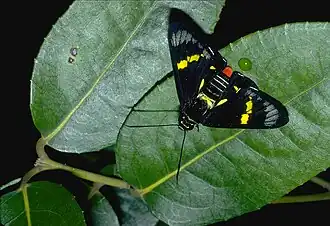 - ↑ Warren, A.D., Ogawa, J.R. & Brower, A.V.Z., 2009: Revised classification of the family Hesperiidae (Lepidoptera: Hesperioidea) based on combined molecular and morphological data. Systematic Entomology 34: 467-523.