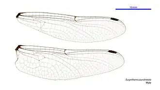 | Vleugel van Eusynthemis aurolineata (mannetje) | |||||||||||||||