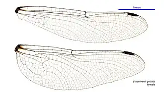 | Vleugel van Eusynthemis guttata (vrouwtje) | |||||||||||||||