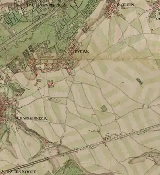 Aan het einde van de achttiende eeuw beschikte Evere over uitgestrekte landbouwgronden ten zuidoosten van het dorp. Het oorspronkelijke karakter van het dorp is nog duidelijk zichtbaar op de Ferrariskaarten.