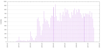 - ↑ (en) Commits by year and month of F-Droid data reported by gitstats (2017). Gearchiveerd op 9 July 2017. Geraadpleegd op 19 July 2017.