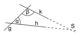Een lijn die twee gegeven evenwijdige lijnen snijdt maakt met elk van de twee lijnen vier hoeken. De evenwijdigheid van de twee gegeven lijnen zorgt ervoor dat een aantal hoeken gelijk zijn.