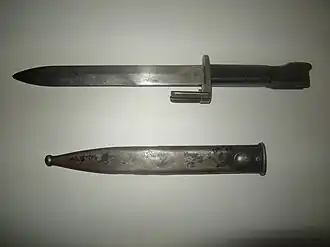 - Type C, Dit type had een sokkelbevestiging die past over de schiettap annex vlamdemper. In het holle heft (de “sokkel”) zijn vier sleuven aangebracht die op lijn komen te liggen met de sleuven in de schiettap annex vlamdemper. Het heft was bijna even lang als de kling[8]. Een eenvoudige veervergrendeling aan de achterkant van het heft vergrendelde de bajonet op het geweer.[9] De kling[8] had een halfcirkelvormig profiel, vlak aan de bovenzijde en rond aan de onderzijde. Type C was eenvoudig te produceren, en was bij vele krijgsmachten in gebruik (o.a. België en Nederland).[9] De gehele bajonet is gemaakt uit één stuk staal. Het heft en de eerste centimeter van de kling[8] zijn zwart gespoten terwijl de rest van de kling[8] legergroen gefosfateerd is. Latere modellen zijn gegoten. De lengte is 290 mm, waarvan de kling[8] 170 mm lang is.