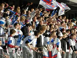 De supportersvereniging Skansin groepeert zich bij ieder thuisduel in de tribune achter het doel.