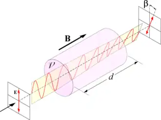 Het Faraday-effect of Faraday rotatie is een magneto-optisch effect. Het beschrijft hoe het polarisatievlak van licht draait onder invloed van een magnetisch veld.[1]