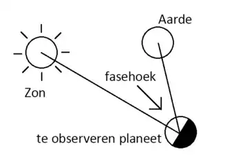 De fasehoek is een hoek tussen de richtingen waarin een waarnemer op de Maan of op een planeet de Zon en de Aarde zou kunnen zien. Bij volle en nieuwe maan is de fasehoek van de Maan dus 0 graden, evenals van een binnenplaneet tijdens de onder- en bovenconjunctie en van een buitenplaneet tijdens oppositie en conjunctie.