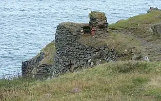 Het kasteel is gebouwd op een relatief kleine uitstekende rotspunt langs de kust. De rots komt 50 meter boven het water uit.[1][2] Het oppervlak van de rotspunt is ongeveer 80 bij 30 meter.[1][2] Het kasteel was toegankelijk via een houten brug die het vasteland met de rotspunt verbond. Door de beperkte ruimte op de rotspunt was het kasteel vrij compact gebouwd met een ringmuur langs de randen van de rotspunt. Er waren twee binnenplaatsen, die op verschillende niveaus lagen.[2] Tegenwoordig is er alleen nog een deel van de noordoostelijke muur over en een deel van de fundamenten.