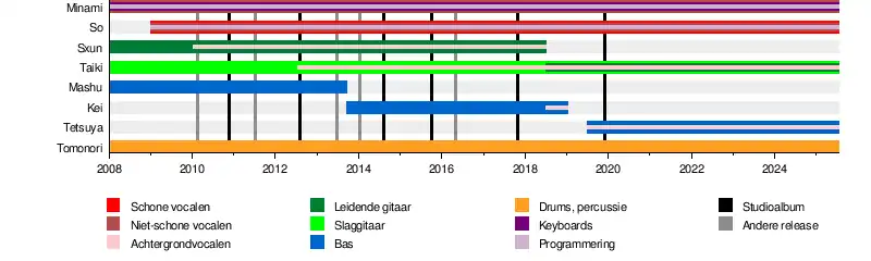 - Minami – niet-schone vocalen, rap, keyboard, programmering (2008–heden)