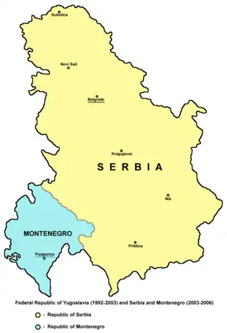 De Federale Republiek Joegoslavië kwam in 2003 ten einde en werd vervangen door de losse federatie Servië en Montenegro (nieuwe grondwet 4 februari 2003). Op 3 juni 2006 hield deze confederatie ook op met bestaan, nadat Montenegro na een referendum de onafhankelijkheid uitriep.