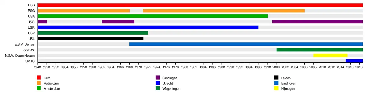 In de loop der jaren heeft de Federatie veel verloop gekend, verenigingen traden toe en verlieten het verband. Dat staat in de onderstaande tabel weergegeven: