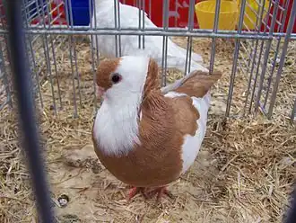 - Snavel: Krap middellang en krachtig aan de basis; een stompe hoek met het voorhoofd vormend; vleeskleurig.