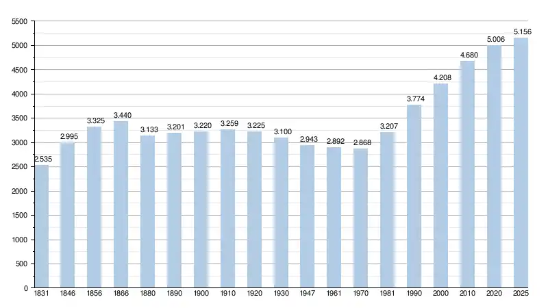 Alle historische gegevens hebben betrekking op de huidige gemeente, inclusief deelgemeenten, zoals ontstaan na de fusie van 1 januari 1977.
