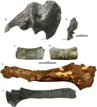 Het spaakbeen is 135 millimeter lang. Het bovenvlak is relatief vlak en de schacht mist een duidelijke bult in het midden. De ellepijp, in 2008 voor een stuk opperarmbeen aangezien, zou in verhouding tot het spaakbeen gaaf zeventien tot achttien centimeter lang moeten zijn geweest. Het bewaarde stuk doet echter een wat robuustere bouw vermoeden, vijftien tot zeventien centimeter in lengte. Het onderste uiteinde is plat, licht verbreed en naar binnen gebogen. Zo'n buiging toont ook Cerasinops en Prenoceratops.