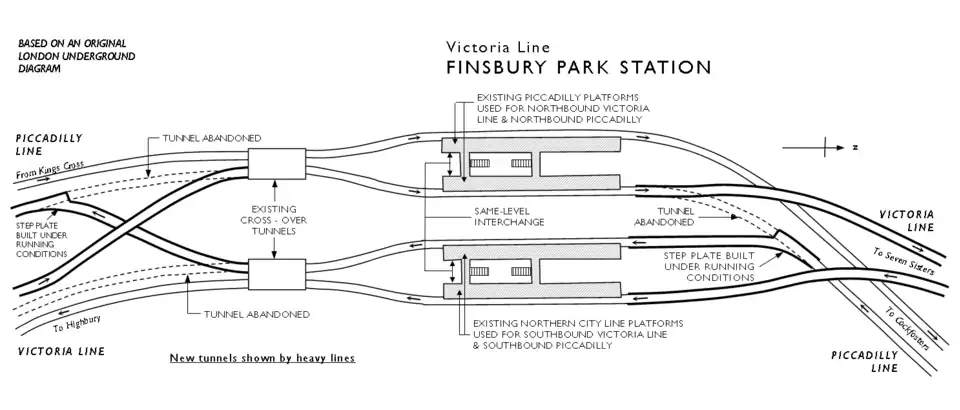Na de Tweede Wereldoorlog werd de vervoersbehoefte in en om Londen in kaart gebracht en in het verslag uit 1946 werd onder andere tunnel 8 tussen het noordoosten en het zuiden van de stad voorgesteld. De werkgroep London Plan Working Party bracht in 1949 een verslag uit waarin werd voorgesteld om in plaats van tunnel 8 een metrolijn, route C, met het standaard kleinprofiel van de tubes te bouwen om de Northern Line en de Piccadilly Line te ontlasten.[4] In 1955 waren de plannen voor de lijn uitgewerkt waarin zoveel mogelijk overstappunten met andere lijnen en British Rail werden opgenomen. Finsbury Park was hierbij een ideale situatie door de aanwezigheid van de vier ondergrondse perrons. De herschikking van de aansluitende tunnels zou een overstap tussen de twee lijnen in dezelfde richting mogelijk maken via de respectievelijke verdeelhallen tussen de sporen. Om plaats te maken voor de Victoria Line werd de Northern City Line op 3 oktober 1964 ingekort tot Drayton Park.