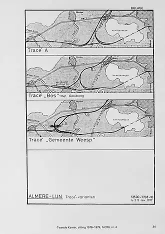Plannen voor de toen genoemde Almere-lijn kwamen onder andere aan de orde bij de Tweede Kamer. Er waren toen nog verschillende varianten voor de ligging.