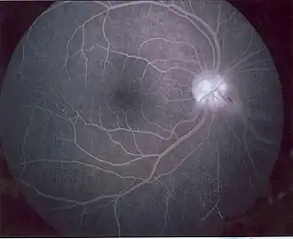 - ↑ Fluorescein Angiography - EyeWiki. eyewiki.aao.org. Geraadpleegd op 19 april 2020.
