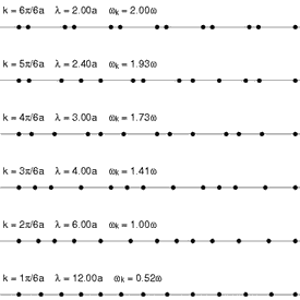 In een los molecuul kan men vaak de trillingswijzen van de afzonderlijke bindingen in eerste instantie als een harmonische oscillator beschrijven. Bij grotere moleculen ontstaan er echter trillingswijzen die meerdere atomen en hun bindingen omvatten. Bij een vaste stof moet men in de regel alle atomen van het gehele kristal in hun geheel beschouwen. De natuurlijke trillingswijzen van zo'n systeem kunnen dan het beste in termen van Bloch-functies (sinusoïdale golven) beschreven worden. De golven worden gekenmerkt door een golfvector k in een beschrijving die analoog is aan die van de elektronenbanden van het kristal.