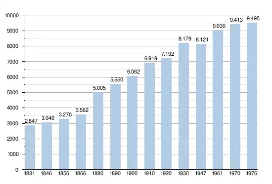 - Bron:NIS - Opm:1831 t/m 1970=volkstellingen; 1976= inwoneraantal op 31 december