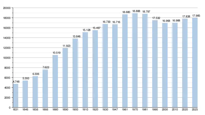 Alle historische gegevens hebben betrekking op de huidige gemeente, inclusief deelgemeenten, zoals ontstaan na de fusie van 1 januari 1977.