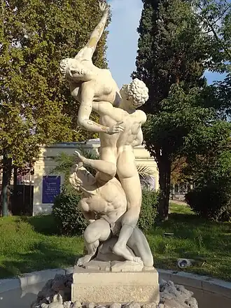 Het stelt een scène voor uit de Romeinse Oudheid: de Sabijnse maagdenroof. De Bourbon-dynastie van het Koninkrijk Napels bestelde circa 1750 het beeld voor haar Paleis van Caserta. De kunstenaar was Tommaso Solari senior. Solari inspireerde zich voor de fontein op het 16e-eeuws beeld van de Zuid-Nederlandse beeldhouwer Giambologna; het origineel staat in de Loggia dei Lanzi in Florence. De fontein, in neoclassicistische stijl, werd tijdelijk in het paleispark geïnstalleerd.